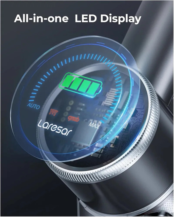 Elite5 از لاریسار را میتوان بهترین جارو شارژی دیجیتال در رده خود دانست. نمایشگر LED پیشرفته آن، اطلاعات مهمی همچون سطح باتری، حالت عملکرد، و هشدارهای مربوط به فیلتر را نمایش میدهد. این قابلیتها در کنار طراحی سبک و قابلیت استفاده بدون سیم، تجربهای مدرن و کاربردی از نظافت را به شما ارائه میدهد.